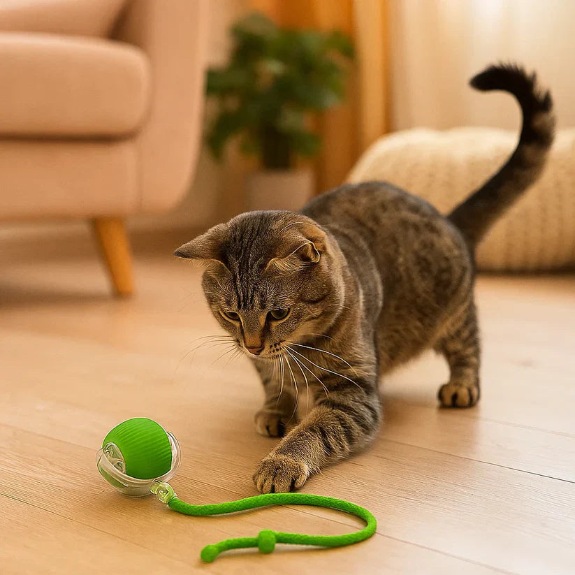 🐱 Ergutab jahipidamisinstinkti: liikuv nöör ja pall kutsuvad kassi loomulikult hüppama, jälitama ja „saaki püüdma“.