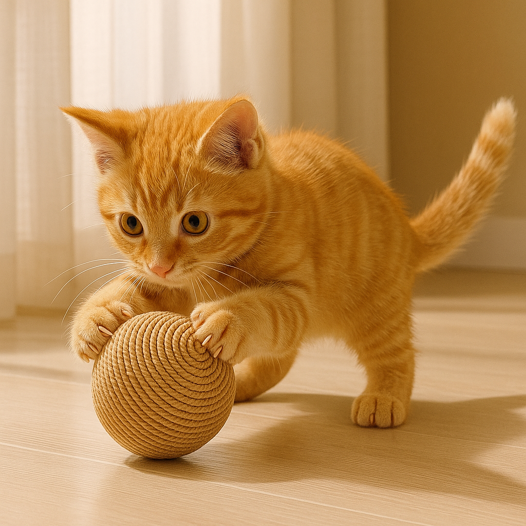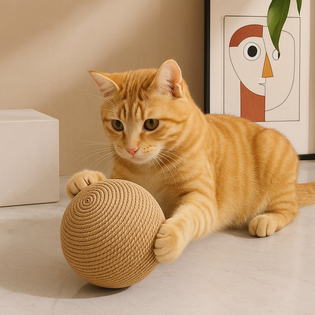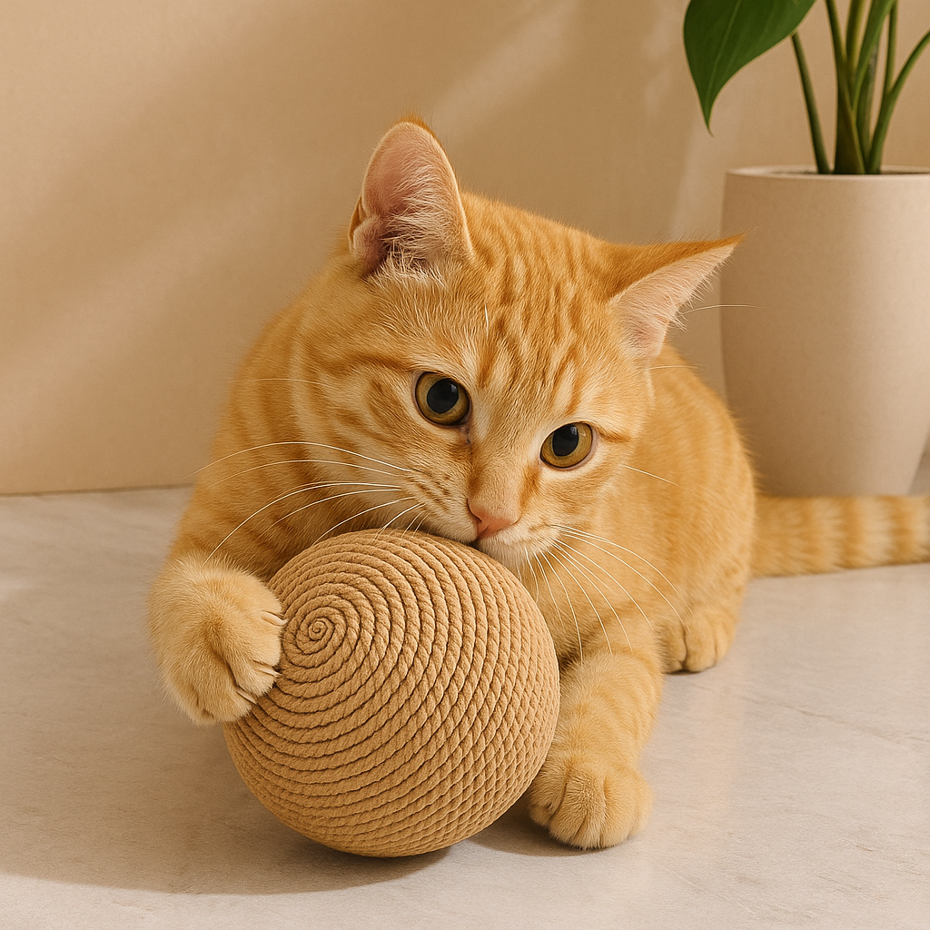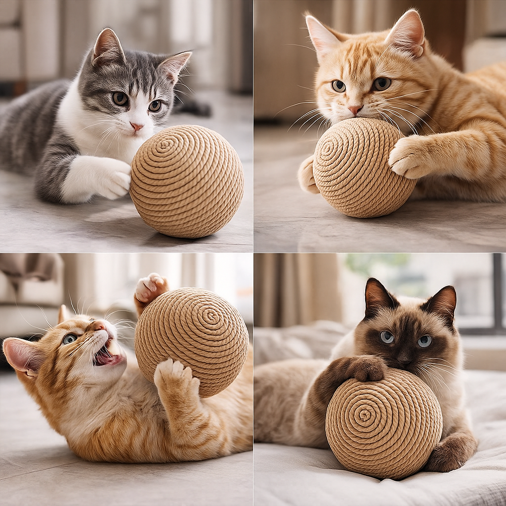 Pall on valmistatud eriti vastupidavast sisalkiust, mis talub kraapimist, närimist ja igapäevast intensiivset kasutust. ⚡ Iga puudutus tekitab loomuliku heli, mis äratab kassi jahiinstinkti hetkega ja muudab isegi kõige passiivsema kassi aktiivseks. Ilma patareideta, ilma lisakuludeta — mäng algab kohe.