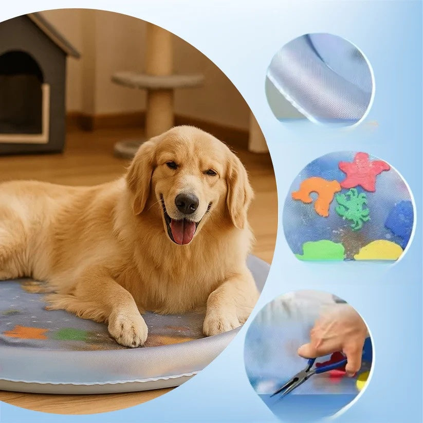 Jahutav veemängu madrats koertele 2.0 pakub ideaalset tasakaalu värskenduse ja tegevuse vahel. Lihtsalt täida madrats veega – ja meeldivalt jahe pind aitab koeral koheselt maha jahtuda. Samal ajal kutsuvad värvilised liikuvad elemendid koera mängima ja avastama – ilma elektrita, ilma külmakottideta, täiesti loomulikult!